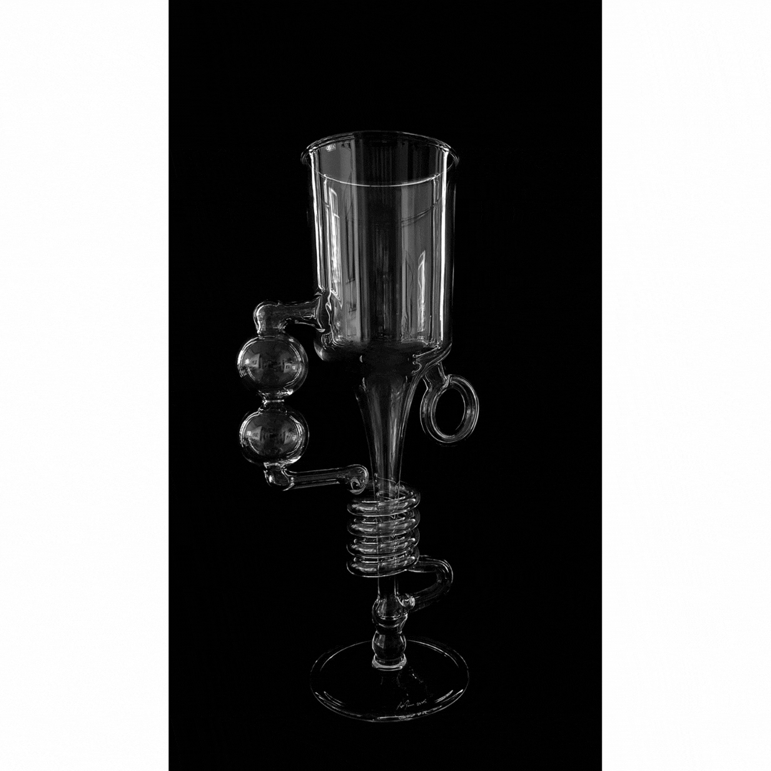 A master of material and imagination, Tim Drier (American, b. 1965) is celebrated for his precision-made scientific glassware and his visionary fusion of art, science, and design. With a career spanning more than three decades, Drier’s work reflects a rare balance of technical mastery and creative ingenuity—where the discipline of laboratory craft meets the poetry of form and function. Beginning his career as a journeyman and evolving into a master glassblower within the scientific research community, Drier has spent a lifetime refining his skills in the demanding art of flameworking. His collections merge chemistry and engineering into sculptural compositions that are at once whimsical, architectural, and intelligent, inviting both visual and sensory engagement. Best known for his Barware Reimagined series, Drier transforms authentic elements of laboratory glass into experimental vessels that celebrate the “effervescent dance of carbonated beverages as both visual joy and taste.” His works transcend conventional notions of craft, appealing equally to collectors, connoisseurs, and design enthusiasts drawn to their precision and playful sophistication. Drier’s artistry has been recognized and exhibited by leading institutions including The Corning Museum of Glass, The Pittsburgh Glass Center, and The University of Michigan, where his contributions have influenced the dialogue between scientific glass and contemporary art. In addition to his studio practice, he has shared his expertise as an instructor and demonstrator across the country, including teaching at The Studio of The Corning Museum of Glass and the Pittsburgh Glass Center. Meticulously crafted yet full of imagination, Tim Drier’s glassworks embody the meeting point of science, skill, and wonder; a celebration of invention made visible.