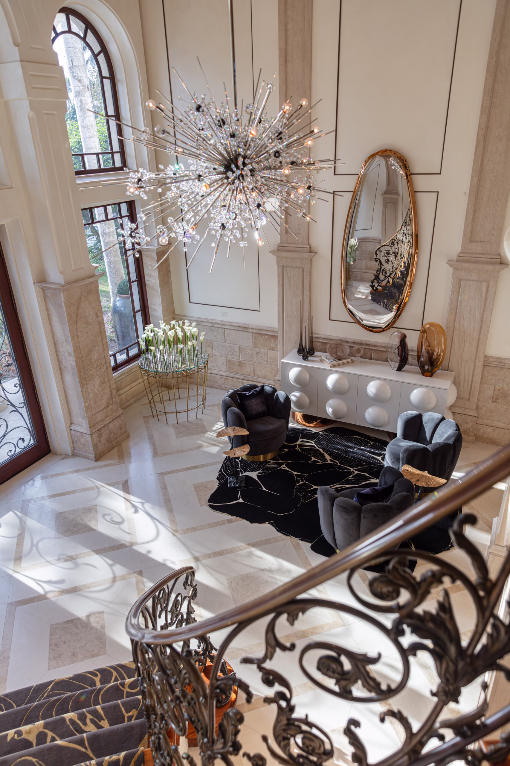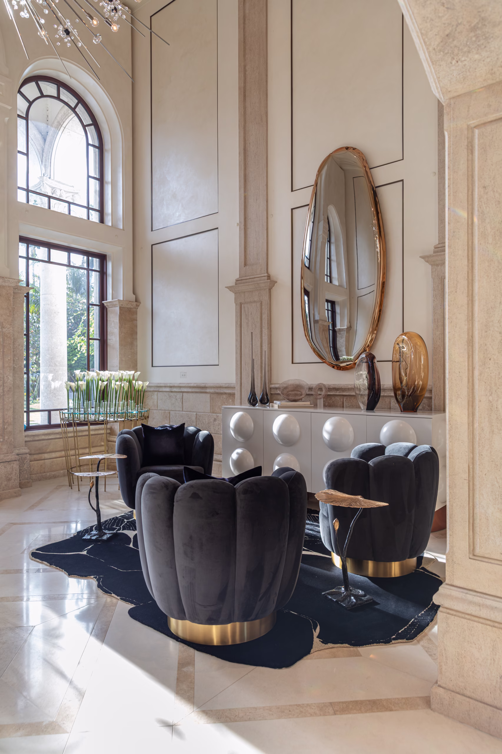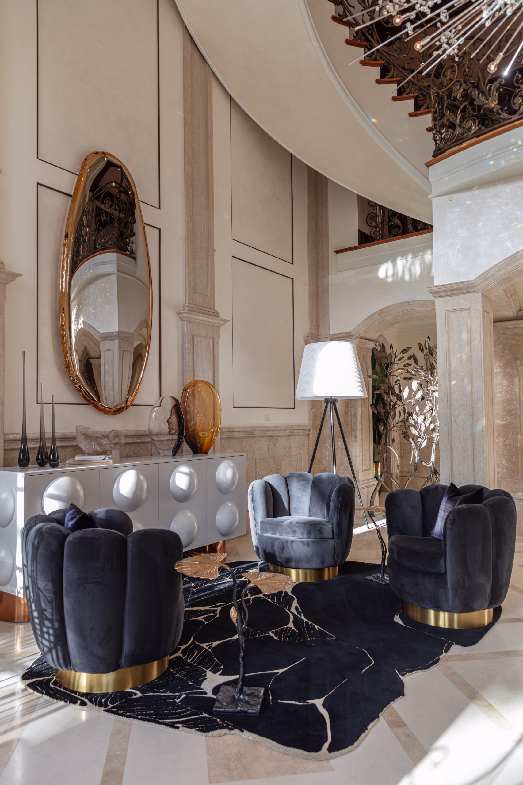 Crafting a distinctive penthouse with unparalleled views of the Gulf of Mexico, Method & Concept collaborated closely with the collector/client from pre-construction drawings to final finish selections. The result is a holistic interior that enhances the overall spatial experience. Within this refined and stylish setting, a fusion of unique finishes and materials seamlessly unites contemporary art with antiquity, resulting in a truly eclectic and captivating atmosphere.